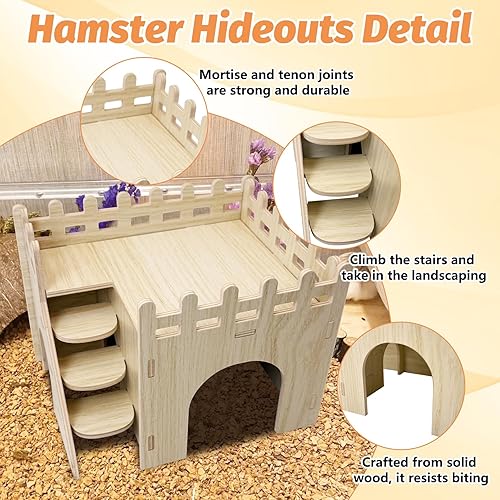 Spacious Double-Level Hideout: Featuring a double-layered design, this hamster house offers ample space for hiding, playing, and resting, catering to your pet's natural instincts and need for exploration