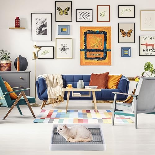 Heightened Grille: our cat litter boxes have grilles of suitable size, which can allow pee or waste to flow directly below your pets feet into the tray underneath, keeping your small pets feet dry and clean, and their feet won't get stuck in the grid; The mesh design is raised and the contact surface size is just right can holds more pet pee or waste