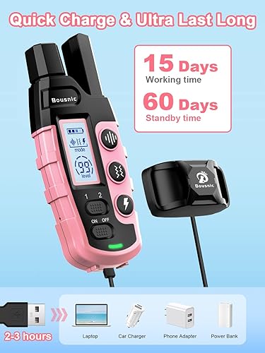 Quick Charge & Ultra Last Long: The electric dog collar can last up to 15-60 days after 2-3 hours of charge, easy to charge with our car charger or power bank, without worrying about being out of power when we are running or camping with dogs.