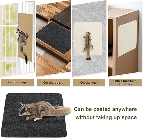 Excellent Design: The sugar glider climbing mats adopts a self-adhesive design with strong viscosity. It can be pasted on cages, boards, walls or furniture surfaces. (Reminder: Due to the strong viscosity, it is recommended to only stick 4 corners so that it is easier to remove later)