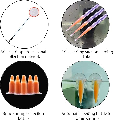 The brine shrimp incubator contains:1pcs brine shrimp eggs incubator Hatchery,1pcs silver air pump with 1pcs black controller valve,1pcs check valve, 1pcs air stone,11.8 Inch long transparent aquarium tubing, 1 meter black airline ,one unit brine shrimp net colllector,two units automatic brine shrimp feeder for fish,three units Brine shrimp suction tube and six units Brine shrimp storage bottle