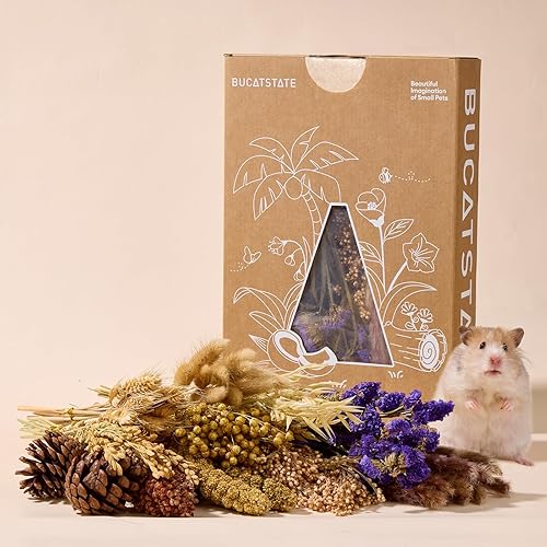 ✅【Naturally Air-Dried, Pet-Friendly Material】Made from 100% naturally dried herbs and flowers—no additives, no artificial scent—this bedding blend includes oat, wheat, millet, rabbit tail grass, and more. It’s safe for daily interaction and gentle on tiny paws, making it perfect for hamsters and other small animals.