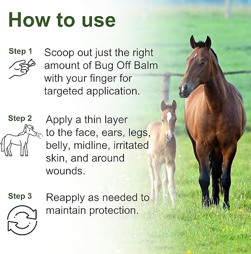 PROTECTION DURING FLY SEASON - Pure Sole Bug Off Balm helps support skin comfort for horses, cows, donkeys, goats, sheep, and all farm animals. It can be used on all sensitive areas like the face, ears, nose, around the eyes, legs, belly, sore wounds, and irritated skin. This bug balm is perfect for midline dermatitis and sweet itch and helps keep noseeums away.