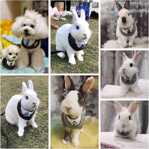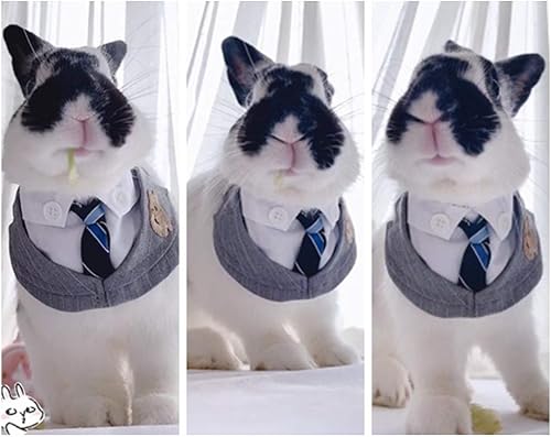 LOVELY DESIGH: This rabbit collar clothes is embroidered a cute rabbit on the chest and designed in a fashion and cute formal suit with classic stripe tie & vintage buttons decor,which is really adorable and elegant. Will be a perfect gift for your lovely pets to wear in wedding holiday birthday party photos,daily activities,Christmas.