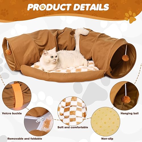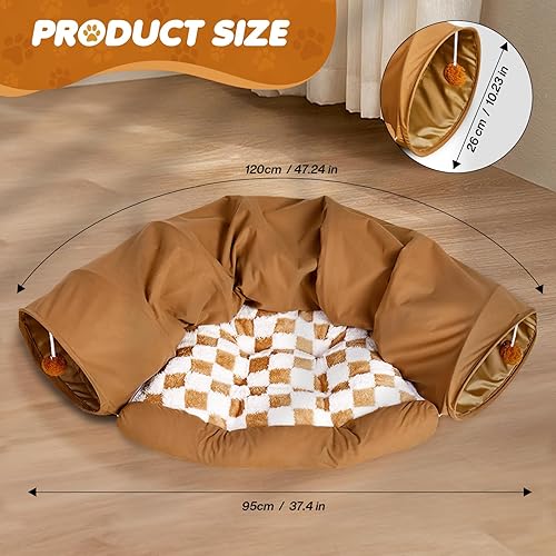 【2-in-1 Design】: Our bunny bed tunnel combines the design of bed and tunnel. It is a luxurious fan-shaped leisure place, and there are plush balls hanging at the entrance of the tunnel, providing your rabbit with a space to play and rest at the same time.
