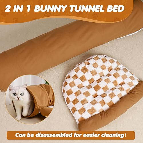 【Removable Split Design】: The bunny toys tunnel uses a zipper to connect the bed and the tunnel. You can combine or separate them according to different needs. The detachable design is also more convenient for cleaning.
