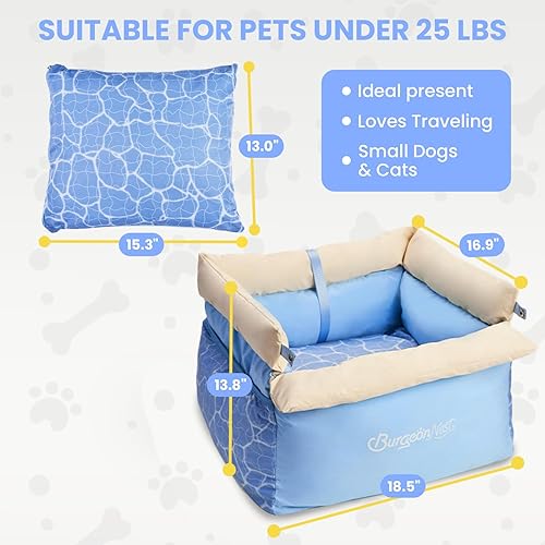 Durable Oxford Fabric & Comfort Upgrade: BurgeonNest small dog car seat is made with tough Oxford fabric and reinforced double stitching to prevent tearing—even in the washing machine. The front bolster features a snap-down design that turns into a comfy pillow, giving your pup better head and neck support for a more relaxing ride.