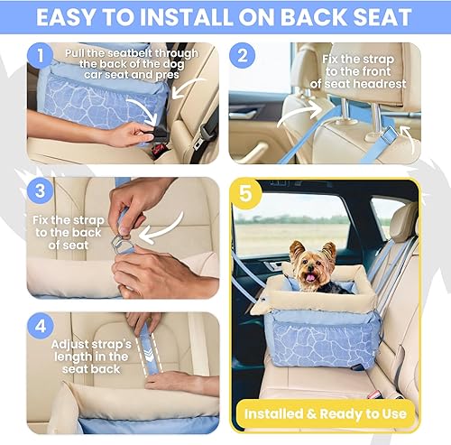Safe & Easy to Install: This pet carseat comes with a built-in safety leash to keep your pup securely in place, so they won’t jump out or distract you while driving. The adjustable straps and D-ring design make setup quick and hassle-free—just wrap the straps around the top and back of your car seat, clip them to the D-rings on each side, and tighten as needed. You can install it in both the front and back seat of your car as you like. And it fits most kinds of car seats and car types.