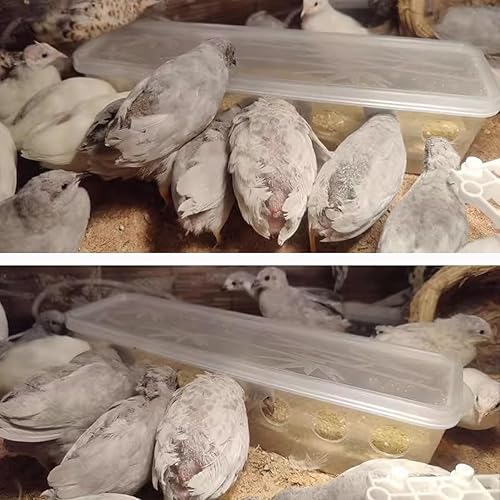 Good design: The feeder is divided into 4 holes and can be used by multiple button quails simultaneously. The design to reduce spillage ensures that each bird can feed side by side in order without disturbing each other. The lid design facilitates the addition of seeds.