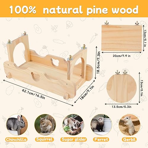 Easy Installation: This chinchilla bridge adopts a unique screw assembly method for safe installation. Simply use the included tools to tighten the metal wing nuts and bolts, and the chinchilla wood ledges will be firmly secured, avoiding unnecessary movement or swinging. This provides continuous and reliable support for pets'activities, allowing them to play and rest peacefully