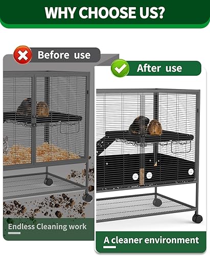 [Say GOODBYE to Endless Cleaning] - The ferret cage scatter guard prevents food, feces, urine, bedding, and debris from falling outside the cage, keeping the surrounding area clean and reducing daily cleanup time for a tranquil environment.