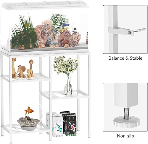 Sturdy Construction: The aquarium tank stand is made of high-class metal frame to ensure your tank is stable. A sturdy design with adjustable anti-slip feet makes the metal fish tank stand firmly while taking good care your fish tank and the floor.