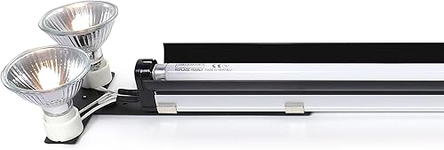 These 50w GU10 Reptile Basking Heat Lamps work well with our Reptile T5HO UVB + GU10 Basking Light Fixtures. The GU10’s compact size and efficiency enables mounting the streamlined fixture underneath the top screen mesh.