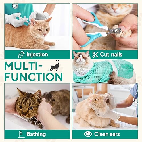 1.Waterproof & Insulated: Protect your clothes and keep your cat warm during bath time with our waterproof and insulated cat washing bag.Allow you to release one paw at a time,easy to clean and dry.