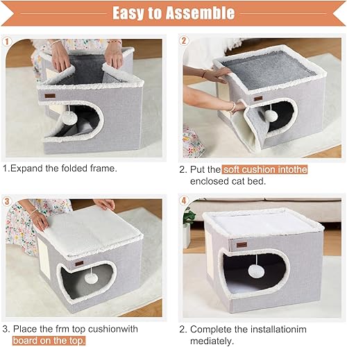 EASY MAINTENANCE: Cleaning this cat Hideaway is a breeze. The removable and machine-washable cushion cover allows for easy maintenance, while the durable material ensures it remains in great condition after each wash. Enjoy a fuss-free cat house experience!