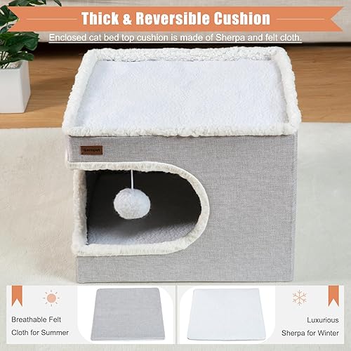 COZY RETREAT: Designed for maximum comfort, this cat cube house provides a cozy retreat for your pet. The soft and plush material ensures your cat feels safe and snug, providing them with a comfortable space to curl up and relax.
