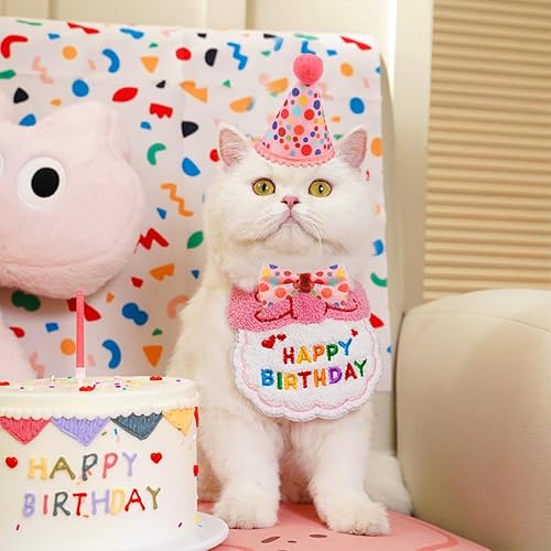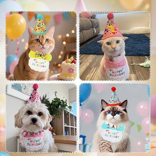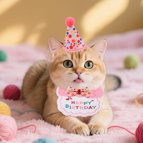 Suitable for Every Occasion: The cat birthday party hat bandana set is not only suitable for birthday parties, but also great for daily wear, weddings, new year and photo shoots.
