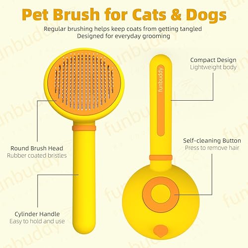 【Purrfect Pet Friend】Our Funbuddy Cat Brush does an excellent job of removing loose hair and reducing shedding for indoor cats. Using Funbuddy Self-Cleaning Slicker Brush on long/short haired cats on a regular basis helps to make grooming efficient and enjoyable for both you and your furry friend. It's your perfect pet friend that keeps your cat's skin healthy and coat shiny.
