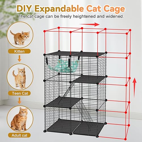 【Sturdy and Durable】With unique anti-tipping design, secure the indoor cat enclosure to the wall with expansion screws and fixed straps. Crafted from durable rust-resistant steel wire, the cat cages comes with door locks and upgraded connectors, while included zip-ties increase the stability and durability of the kitten cage