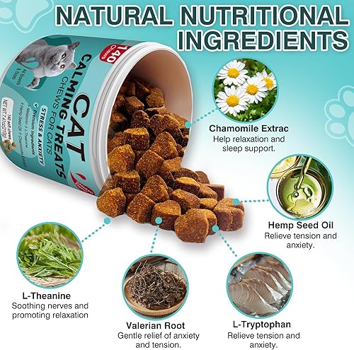 Effectively Calm and Relieve Stress: Our cat calming treats are formulated with natural plant extracts to help your feline friend stay relaxed during stressful situations like travel, vet visits, or boarding. These calming cat chews reduce anxiety, prevent scratching and biting, and promote a sense of calm. Perfect for calming care for cats, these calming cat treats are safe with no side effects, making them ideal for cat calming treats for indoor cats