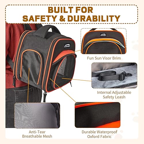 【THOUGHTFUL SERVICE】Choose from four colors: classic black-orange, lively gray-green, soft beige, and fresh blue to match different styles and tastes. Each backpack has bright edging for better visibility outdoors, especially in low-light moments like dawn or dusk, helping keep your pet safe. If you have any questions, feel free to reach out via Amazon messages or our customer email. We’ll get back to you within 24 hours with caring and prompt support.