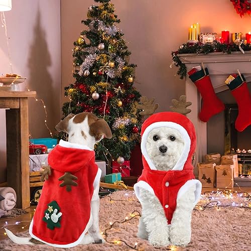Dog Christmas Outfit: You will receive a cute and warm Christmas dog clothes. The dog Christmas costume is designed with elk antlers hat and Christmas tree ornaments, full of Christmas atmosphere and make your pet look like a reindeer on Christmas!