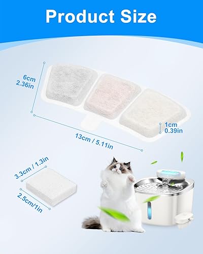 【Perfect Compatibility】Specially designed to be compatible with oneisall cat water fountain filters PW04 3.5L/118oz. Please confirm the model and size of your pet fountain before purchasing to ensure the right fit