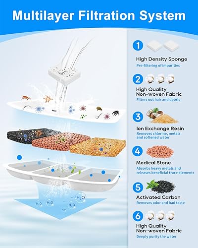 【Multilayer Filtration System】Each fit for oneisall water fountain filters unit features multiple layers to capture hair, debris, and impurities while removing odors, keeping your cat’s drinking water clean, fresh, and healthy