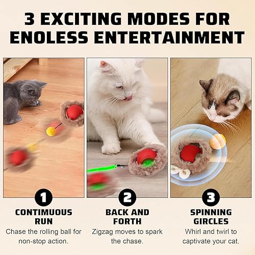 【Toughing Activated】After opening the cat toy, play with your cat for 3 minutes and it will enter the standby mode. When your cat slaps or touches it again, it will be reactivated and play with your cat for another three minutes.