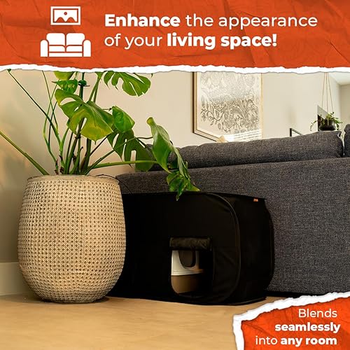 FOLDABLE DESIGN - This cat litter box enclosure effortlessly folds down to a compact size, making it extremely convenient for storage or transportation. Whether you're heading out for a weekend trip or moving to a new home, this litter box enclosure makes your cat’s necessities effortlessly portable.