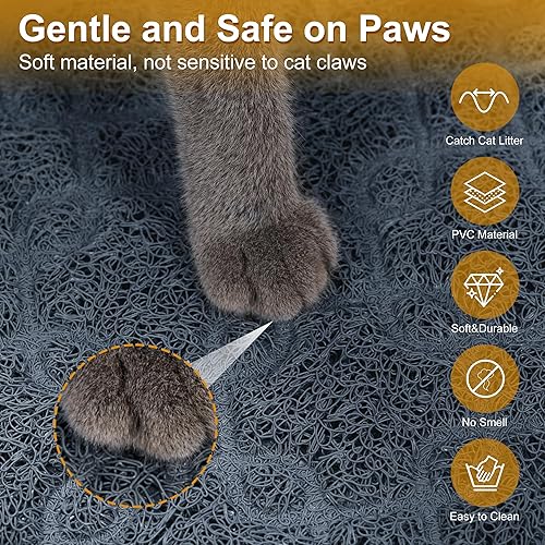 New Design - Litter Trapper: The cat pad is made of durable material; the top has thick mesh coils to effectively grab litter, we have improved our design based on repeated testing, using a combination of indentation and high-quality mesh to catch litter, most of which is left on the mat, not the floor, effectively solving your cleaning problem.
