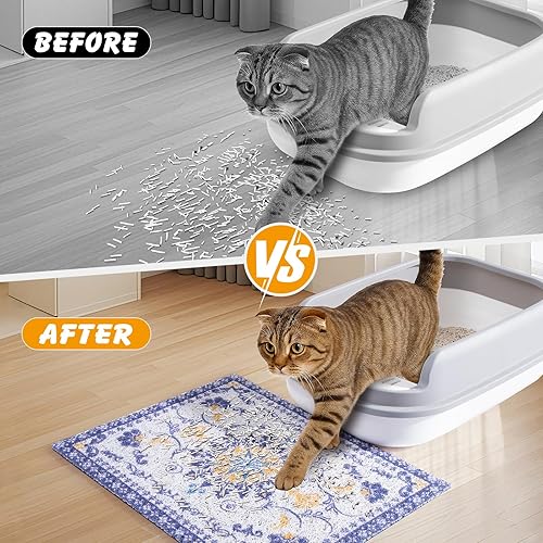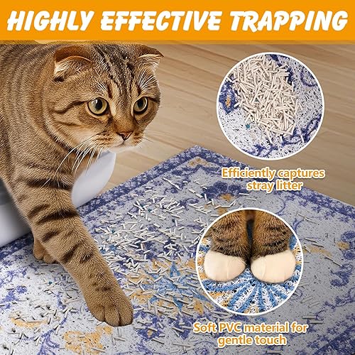 【Keep Floors Clean】20"x15"cat litter mat traps scattered litter around the box, reducing cleanup and keeping floors spotless.