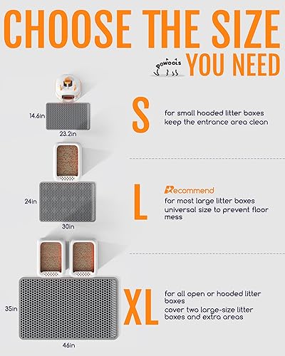 EFFECTIVE LITTER CATCHER: The Powools double-layer kitty litter mat minimizes litter tracking and keeps floors tidy. The upgraded honeycomb holes on the top layer trap loose litter from the box and cat's paws, allowing it to fall through and collect securely in the bottom layer. Besides, this mat is suitable for all types of cat litter, including clumping, crystal, and pellet.
