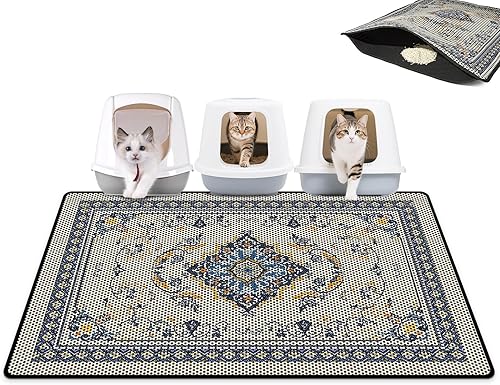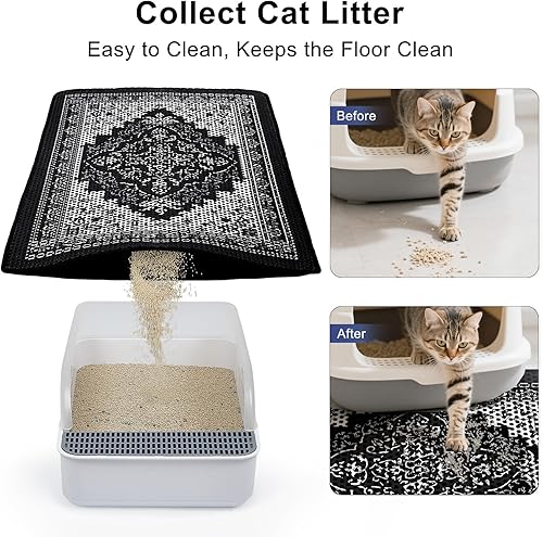 Beautiful decoration: This cat litter mat has a beautiful and unique pattern. It can not only be used as a cat litter box mat, but also as an entry mat, pet feeding mat, etc. It is also a beautiful scenery in the corner of the home
