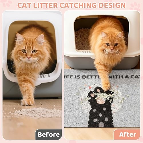 【EFFICIENT LITTER CATCHING TECHNOLOGY】The litter mat features a high-density mesh design with PVC loop texture which can catch fallen cat litter more efficiently. No more endless sweeping and keeping your space clean