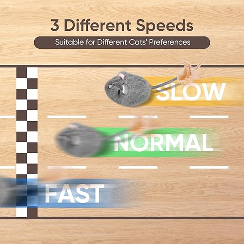 【3 Adjustable Speeds For All Ages】Customize play with Fast, Medium, or Slow speeds in Remote Mode. Ideal for curious kittens (3+ months, start with Slow!) or energetic adult cats (crank up Fast!) - matches their energy level and keeps them mentally stimulated through dynamic interaction.When switching to fast mode,the simulated mouse may move in circles because of the relatively high speed.