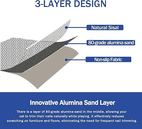 【Innovative 80 - Grade Alumina Sand Layer for Nail Trimming】 This cat scratching mat features an innovative middle layer of 80 - grade alumina sand. It doubles as a scratch nail file, allowing your cat to naturally trim their nails while playing. Say goodbye to worries about scratched furniture and floors. No more hassle of using pet nail grinders or clippers. It's an all - in - one solution for maintaining your cat's nails, making it an essential part of kitten supplies.