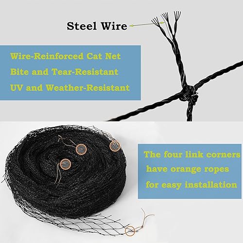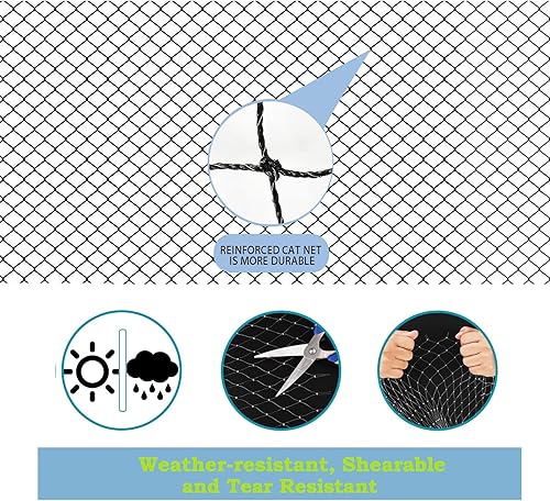 Wire-reinforced Cat Net - Made of high-quality polymer HDPE with steel wire reinforcement, this net is resistant to cat bites, wear, and tear. It is weather-resistant, sun-resistant, Sturdy, and Durable, ensuring long-lasting use.