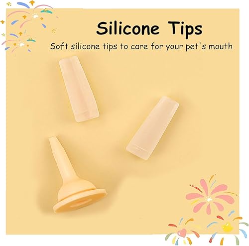 Notice: As pets have different body sizes and characters, there is a very small possibility that your pet will bite off the silicone tip of the feeder or even swallow it. Before using this product, please make sure that you have mounted the silicone tip stably on the handle, and also ensure that your pet is in an emotionally stable state.