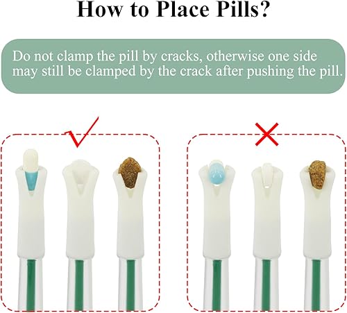 【Suitable Size】The size of this cat pill gun is 5.9 x 2.4 inches. The soft tip can clamp the size of pills between 0.15-0.4 inches. (If you need to clamp a larger pill, please use a knife to cut deeper cracks)