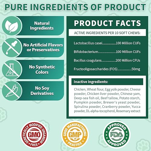 Multi-Strain Probiotics for Gut Balance - Each cat probiotics chew provides with Bacillus subtilis, Lactobacillus acidophilus, L. plantarum, and Bifidobacterium animalis to help restore gut flora, relieve occasional constipation, and improve digestive tract function and stool quality.