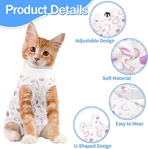 【Easy to Wear】With a long Velcro strap in the back of the recovery shirt, this cat recovery suit for spay features high elasticity and no sleeves for easy on and off, while allowing your cat a larger range of motion. The design of this cat surgical recovery suit is a better fit for cats, reduces the risk of escape or displacement, and can be easily adjusted to fit your cat's size and comfort.