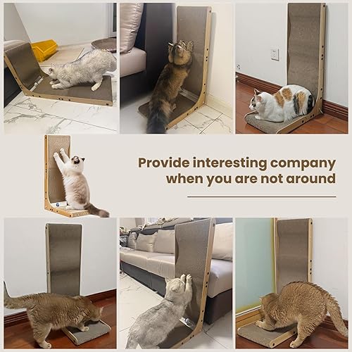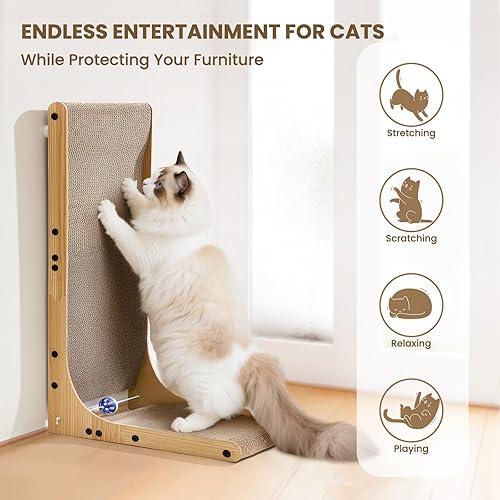 Multifunctional L-shaped design: With both space-saving and multi-functionality in mind, this L-shaped scratch board adapts to all your cat’s needs—whether it’s used as a vertical wall scratching pad, a horizontal lounge/bed, or a comfortable prone cat house. It encourages your cat to stretch, lounge, and scratch, making it ideal for both large cats and playful kittens.
