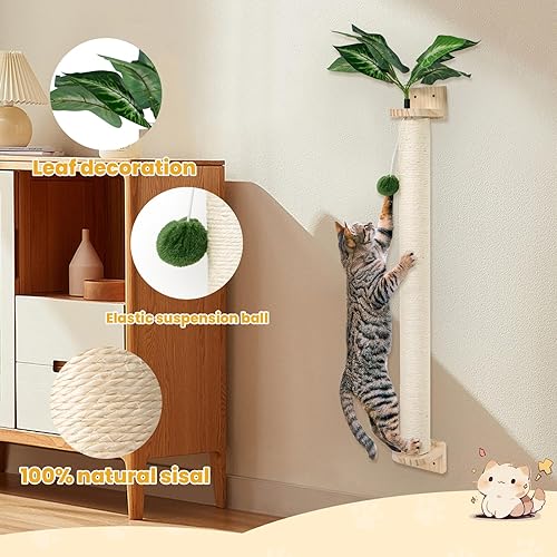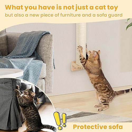 100% High Quality Sisal: Wrapped in natural sisal rope, this scratching post is made of plush, wear-resistant material that allows cats to stretch well, sharpen their claws, and soothe their minds
