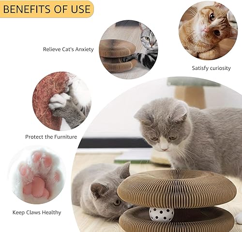 INTERACTIVE BALL: Our Cat Cordion and Ball Cat Scratching Board comes with a toy ball and a track. Your cat will love tracking and scratching the ball, satisfying their natural scratching instinct, for claw grinding and playing.