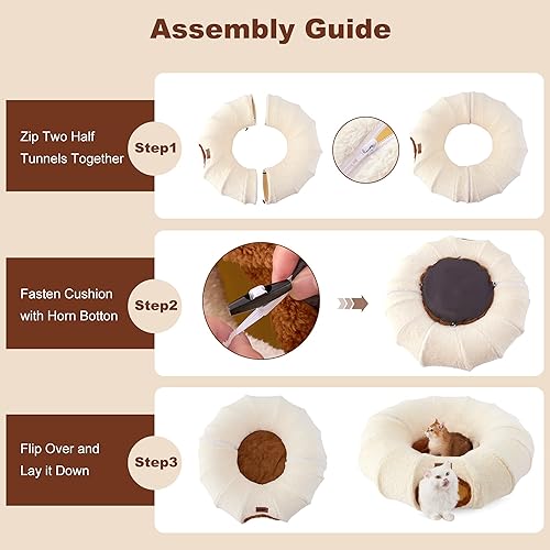 Easy to Clean: With your convenience in mind, ZOMISIA cat tunnel bed is effortless to assemble and quick to store. The removable cushion is machine washable.