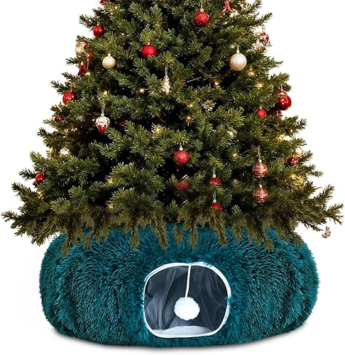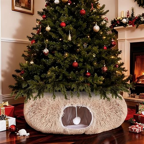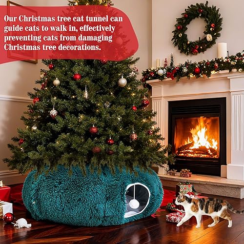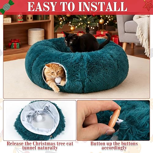 Multifunctional Cat Tunnel: the cat circle tunnel under the Xmas tree can not only be applied as a tunnel toy, but also allows kitties to sleep and jump on the mat; The plush material not only has a festive decorative effect, but also matches a variety of Christmas decorations, bringing double joy experience to you and your pet
