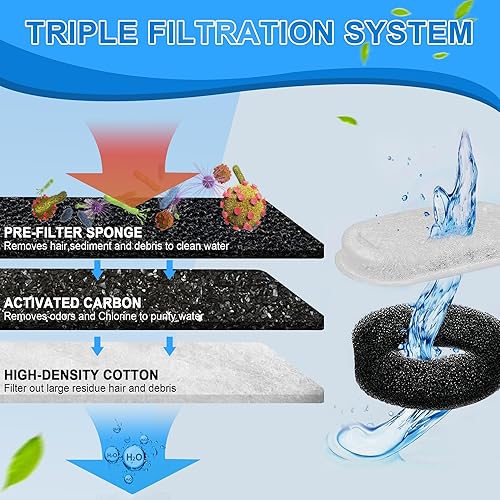 Filtration Roler:The filter help with water purification and eliminating odors, while the filter sponges can filter pet hair, dust, food scraps and more.
