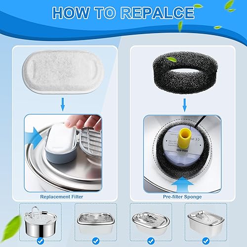 Noter:Before using, please soak and rinse the cat water fountain filter with clean water, we recommend replacing the filter every 2-4 weeks.