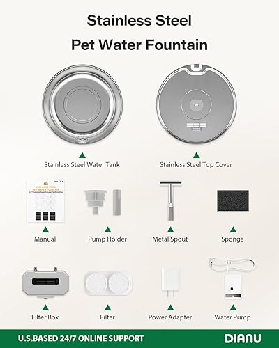 Water Level Window & Stainless Steel: Designed with a visible water level window, allowing you to monitor water levels at a glance without opening the lid. Made from 304 stainless steel, this pet fountain is corrosion-resistant and supports high-temperature cleaning, helping maintain fresh drinking water for your pet